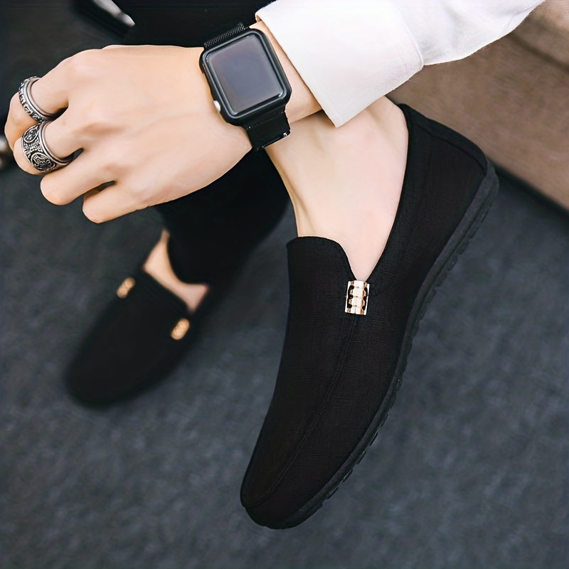 Comfy Canvas Slip-On Loafers - Men's Casual Anti-Skid Flat Shoes with Solid Color Design, Breathable Upper, and Soft Insole for All-Day Comfort - Perfect for Daily Wear