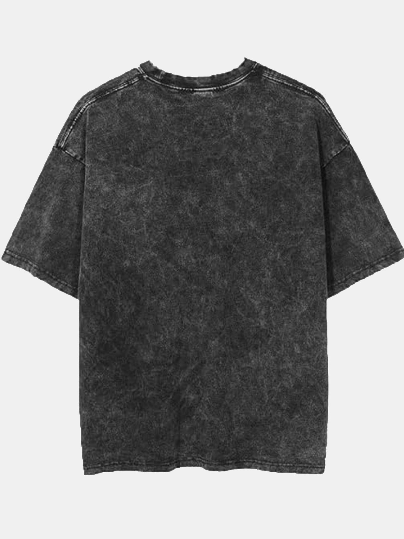 Men Streetwear Vintage Black Tshirt Harajuku Japanese Anime Print T-Shirt Summer Short Sleeve Cotton Loose Washed Tops Tees